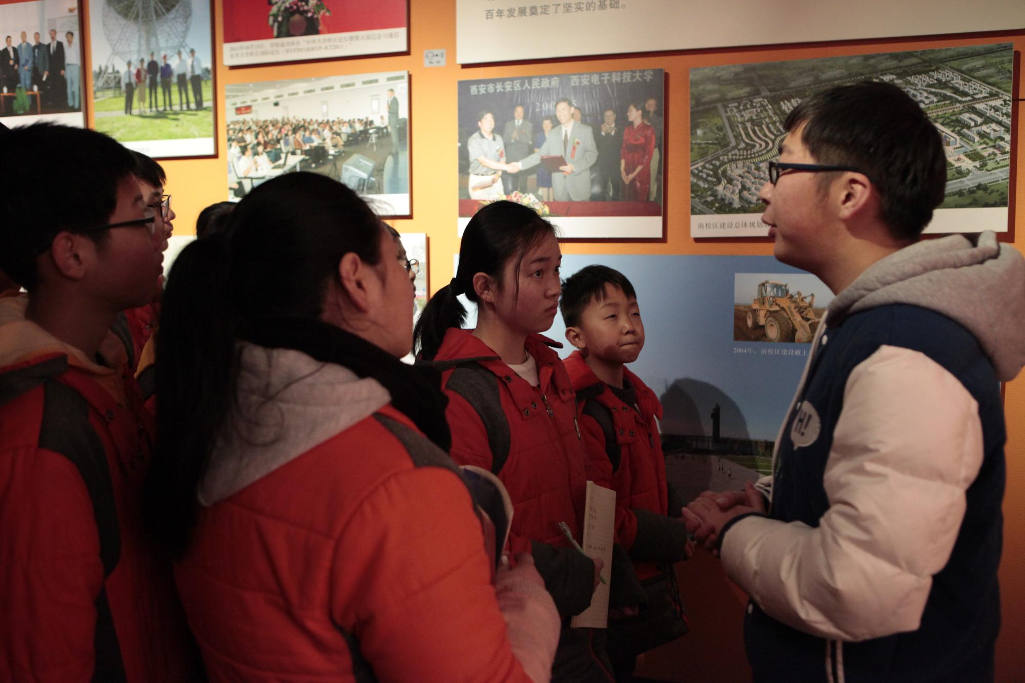 参观活动在“全心全意为人民服务”的主体雕塑前正式展开,工作人员向来访师生介绍了“全心全意为人民服务”的题词来历,以及十根立柱雕塑上代表公司发展的奋斗之路和学科之基。在校史馆,来访师生进一步了解来利国际旗舰厅的办学历程。毛主席、朱总司令等老一辈革命家的题词、一幅幅老照片引来大家纷纷关注,“半步电台起家”“长征路上办学”的生动故事更得到了大家对西电光荣校史的由衷赞叹。