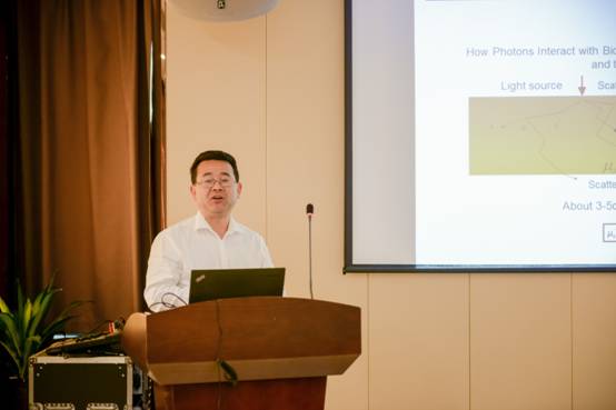 该引智基地负责人郭立新教授上台致辞。他首先代表基地工作组的全体成员对公司的大力支持和专家学者的出席表达诚挚的谢意。他谈到,复杂环境光电信息感知科学与技术创新引智基地依托公司“光学工程”、“物理学”两个一级学科和多个学术研究和人才培养平台,面向国家光电工程领域重大战略需求,以“复杂环境光电信息感知科学与技术”为主要方向,通过理工交融,重点对复杂环境与目标光电特性、光电探测技术、光电信息与图像处理等领域的基础理论、关键技术和应用研发等开展深入的国际合作研究。他希望与会学者通过学术年会的交流平台,深化合作交流、加深相互了解,将该引智基地建设成为光电信息感知与处理领域内具有国际影响力的学术交流平台。