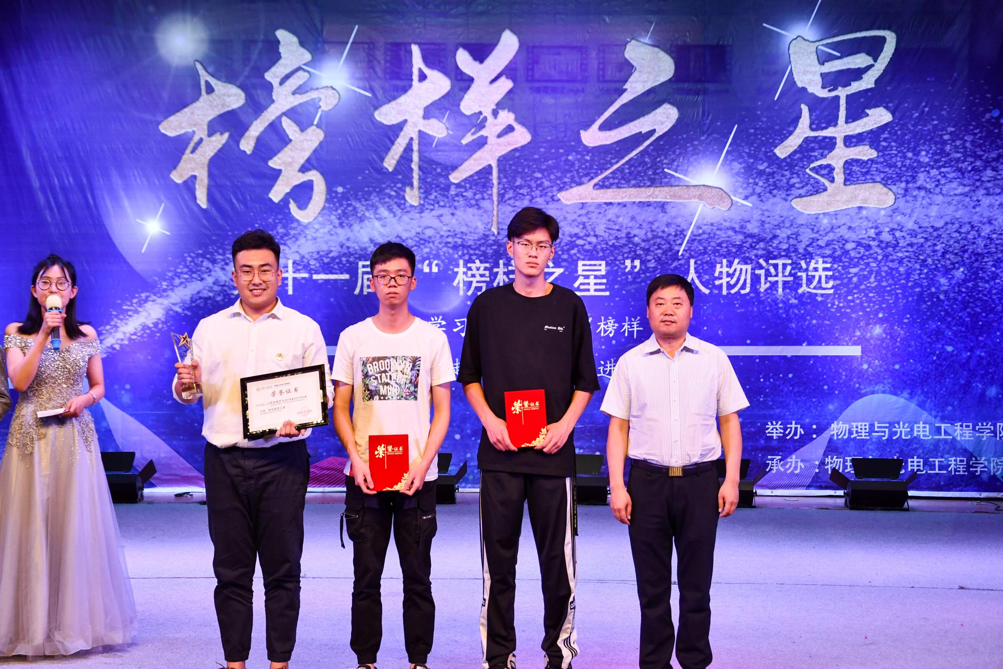(通讯员:黄尉东 洪成超 谢文茜)6月2日晚七时,物理与光电工程公司“璀璨星光,榜样力量”第十一届“榜样之星”人物评选颁奖典礼在南校区老员工活动中心成功举行。物理与光电工程公司党委书记独国社、执行经理邵晓鹏、组织员陈峰、党委副书记林波、副经理魏兵、校团委副书记于志斌等嘉宾老师莅临晚会,公司青年教师代表、全体辅导员与近300名本科生共同参加了本次活动。