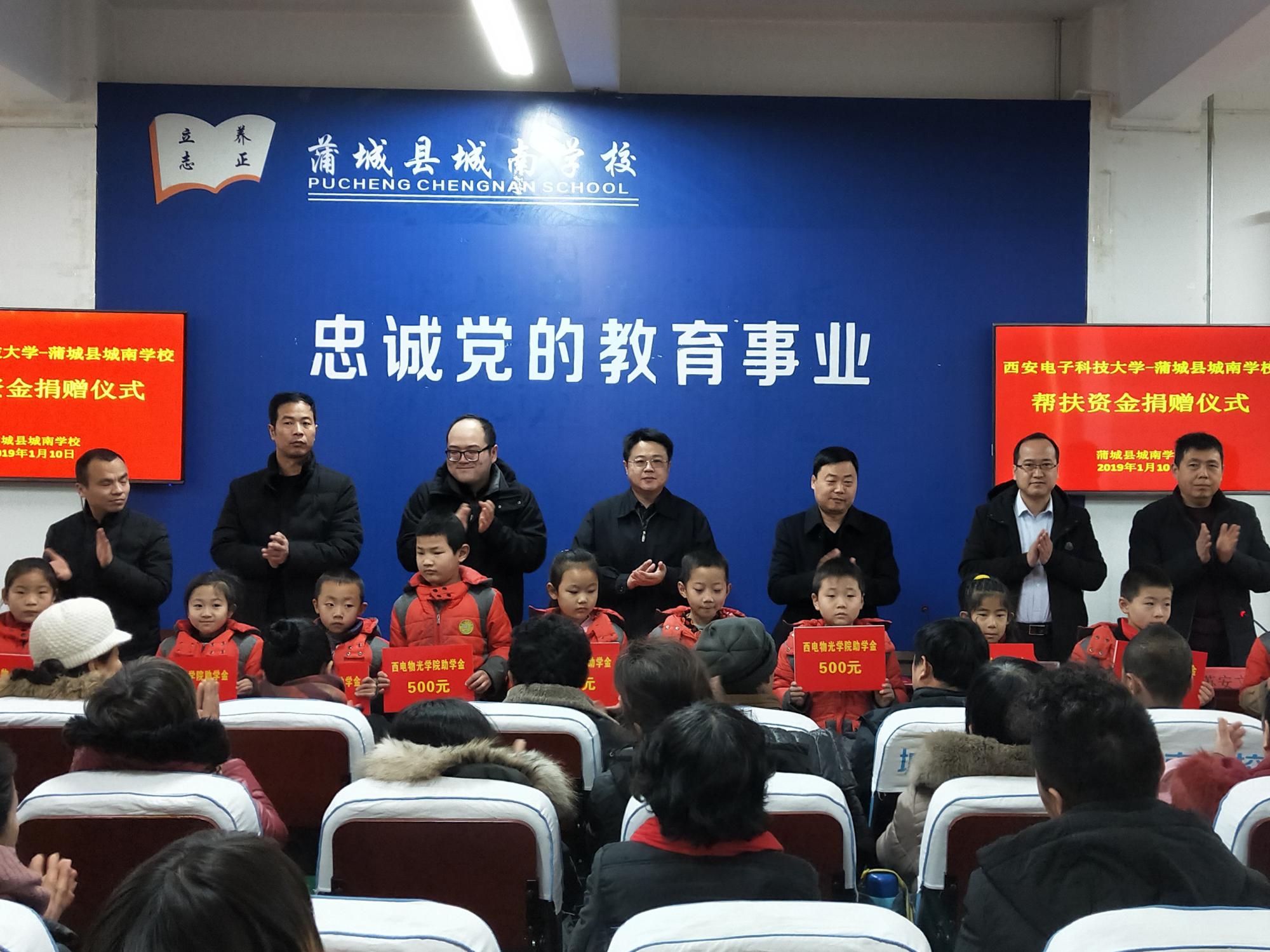 (通讯员:陈海涛)1月10日上午,物理与光电工程公司首期帮扶资金捐赠仪式在蒲城县城南公司二楼会议室举行。物理与光电工程公司党委书记独国社、党委副书记林波、团委书记陈海涛、城南公司董事长许顺强、全体受助员工及家长共同出席了本次仪式。仪式由城南公司党支部书记苏安文主持。