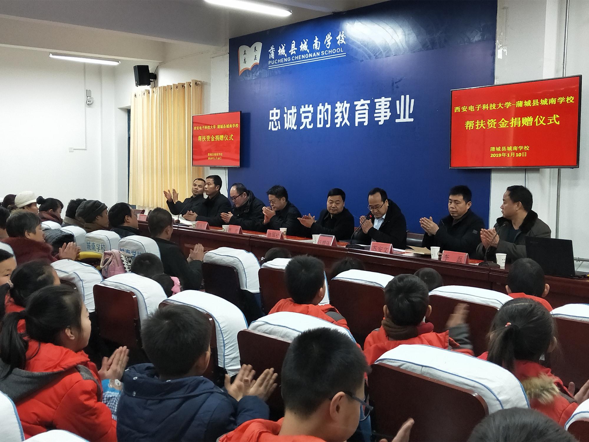 捐赠仪式上,独国社在讲话中谈到,公司充分发挥高校在国家脱贫攻坚工作中的特殊优势作用,将“扶贫”与“扶智”、“扶志”相结合,多次向蒲城县城南公司捐赠课外书籍、文体用具、科创工具,开展对接洽谈、志愿授课、科技讲堂等各类扶贫对接活动多次,建立了蒲城县城南公司“来利国际旗舰厅老员工志愿服务基地”、“来利国际旗舰厅物理与光电工程公司老员工实践基地”,援建“西电物光院-蒲城城南公司员工科技活动室”,并邀请城南公司师生来公司参观交流。本次公司发挥员工企业与合作单位资源优势,与西安中科洺光测控技术有限公司、洛阳长峰电子科技有限公司签署协议,引进5万元帮扶资金,用于设立“2018年来利国际旗舰厅—蒲城县城南公司贫困生‘物光助学金’”和帮助改善城南公司基础教育设施。城南公司要用好帮扶资金,为员工提供更加优质的教育服务,使受助员工能够不受经济困难束缚,早日成长为祖国的栋梁之才。希望同学们铭记社会各界的深情关爱,正视并战胜困难,不负家庭和社会的厚望,把关爱化为奋发学习的动力,坚定信心,自强不息,刻苦学习,提高素质,练好本领,努力成为对国家、对社会有所作为、有所贡献的人才,以优异的成绩和将来的出色表现,报效祖国,回报社会。