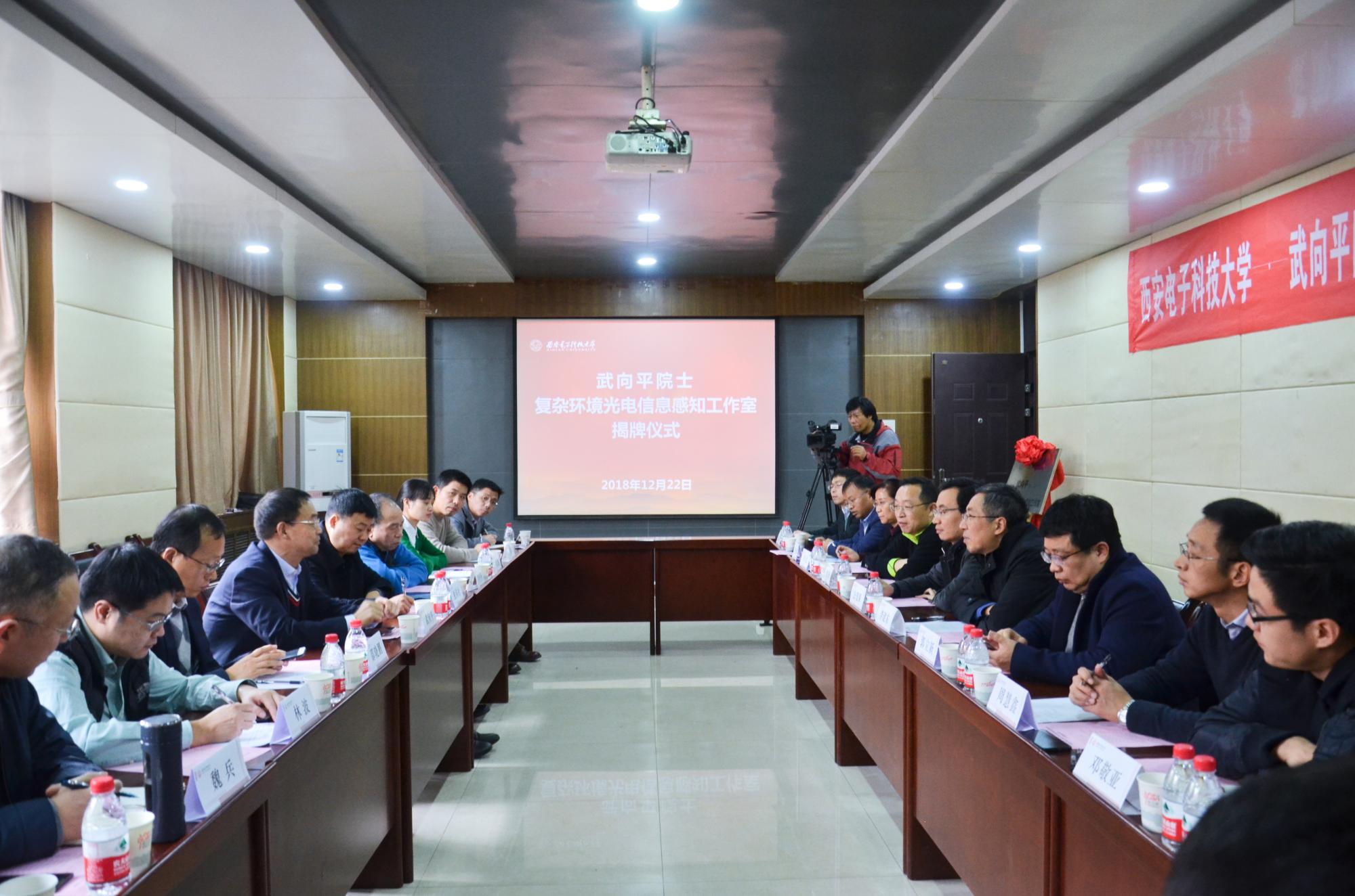 (通讯员:金阳群)12月22日下午,武向平院士“复杂环境光电信息感知”工作室揭牌仪式在西电北校区西大楼三区412会议室举行。来利国际旗舰厅副董事长李建东出席揭牌仪式并讲话。仪式由人才办公茂果教授主持。