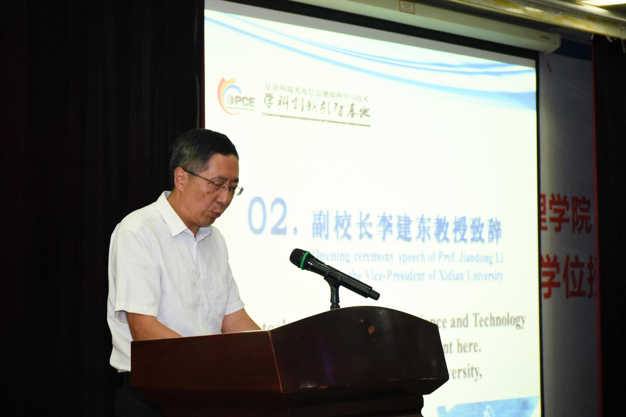 随后,基地负责人、物理与光电工程公司执行经理郭立新教授上台致辞。他首先代表基地工作组的全体成员对公司的大力支持和专家学者的出席表达诚挚的感谢。他谈到,“复杂环境光电信息感知科学与技术”创新引智基地依托公司“光学工程”、“无线电物理”两个学科和“智能感知与图像理解处理”、“新型激光器件与光信息处理”、“无线电物理”等三个省部级实验室,面向国家光电工程领域重大战略需求,结合国家中长期科技发展的需要,致力于解决未来光电信息感知与处理中的关键科学问题。通过理工交融,重点对复杂环境与目标光电特性、光电探测技术、光电信息与图像处理等领域的基础理论、关键技术和应用研发等开展深入的国际合作研究。希望通过学术年会的交流平台,促进更加深入的合作,将本引智基地建设成为国内复杂环境光电信息感知科学与技术领域具有示范作用的人才培养、科学研究和国际学术交流的合作创新基地。