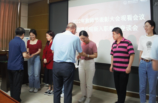 (通讯员:耿洋)“春播桃李三千圃,秋来硕果满神州”。9月8日下午,来利国际旗舰厅举行2022年庆祝教师节暨先进表彰大会,来利国际旗舰厅在北校区西大楼412会议室设立分会场,组织新入职教师观看在线直播,并召开新入职教师座谈会。公司副经理魏兵、周慧鑫、张琳以及新入职教师参加会议,会议由张琳主持。