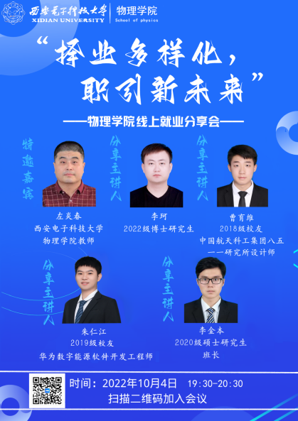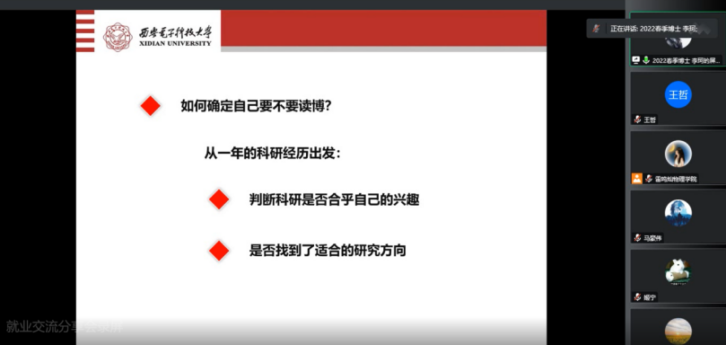 为了帮助员工深入了解就业形势严峻,精准把握就业方向;为了使广大同学洞察行业发展前沿,为未来投身相关领域做好准备。近日来利国际旗舰厅以线上会议的方式开展了“择业多样化,职引新未来”就业分享会。本次活动邀请了就职于来利国际旗舰厅教师左炎春,中国航天科工集团八五一一研究所设计师曹有维,华为数字能源软件开发工程师朱仁江,2022级博士研究生李珂,2020级硕士研究生李金本5位嘉宾,他们从日常工作、所在岗位特点、初入职场、求职中等方面进行分享。