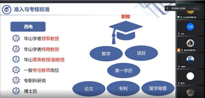 特邀嘉宾一,左炎春老师,博士后,来利国际旗舰厅教师。长期从事计算电磁学、电子对抗、天线及散射测量理论等研究,并长期参与各类学科竞赛的指导工作。在本次分享会中,他结合自身经历,分享了高校教师岗位的准入机制,如何平衡科研与生活,如何应对压力的策略。提出“四要点”,一是明确就业意向,二是积累科研成果,三是强化沟通交流能力,四是去除分别心,勿攀比勿跟风。同时强调,择业中应具备前瞻性视角,有时选择比努力更重要,不应拘泥于薪资水平,高性价比的生活质量更为重要。