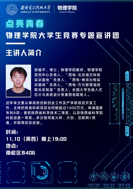 武福平老师从比赛类型、培养目标和学习路线的角度,向同学们讲述了“星火杯、互联网+、全国老员工电子设计大赛”等热门比赛的情况,帮助同学们更好地认识自己适合什么样的比赛,该从什么方向着手准备。宣讲中,武福平老师说到:参加竞赛最重要的是通过实践提升自己的动手能力和综合运用知识的能力,竞赛在“精”不在“多”,要结合自己的爱好选择适合自己的比赛。同时,要用积极的心态去面对比赛,无论结果如何,认真参与其中的经历会让我们获得意想不到的收获。