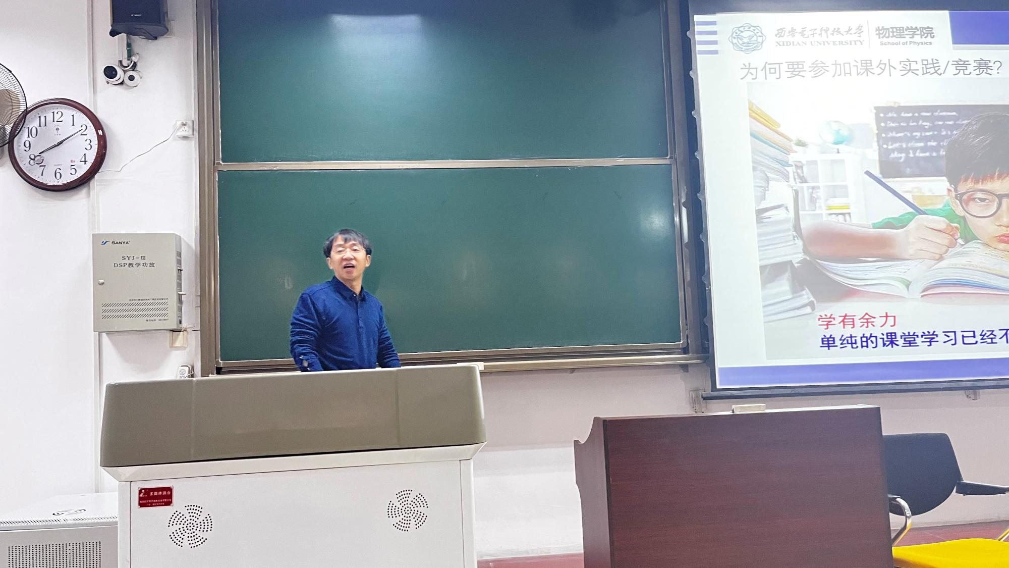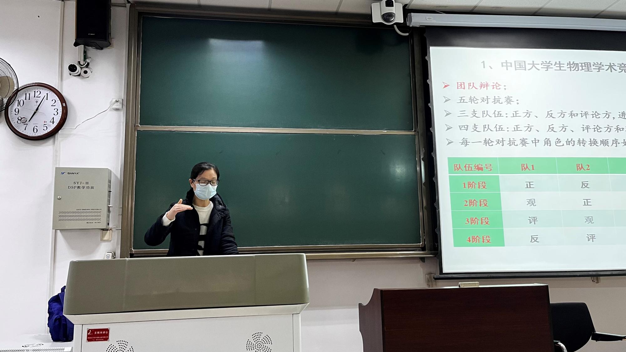 关于“老员工物理学术竞赛”和“老员工物理实验竞赛”,武颖丽老师从比赛规则,比赛内容,往期案例和备赛方法等角度进行了详细的说明。武颖丽老师在宣讲中说到:参与竞赛不一定要等到所有的相关课程学完才能参与,很多知识都是在实践中摸索掌握的,希望同学们能够勇敢迈出第一步,选择自己感兴趣的方向努力,完成自我能力的发掘。
