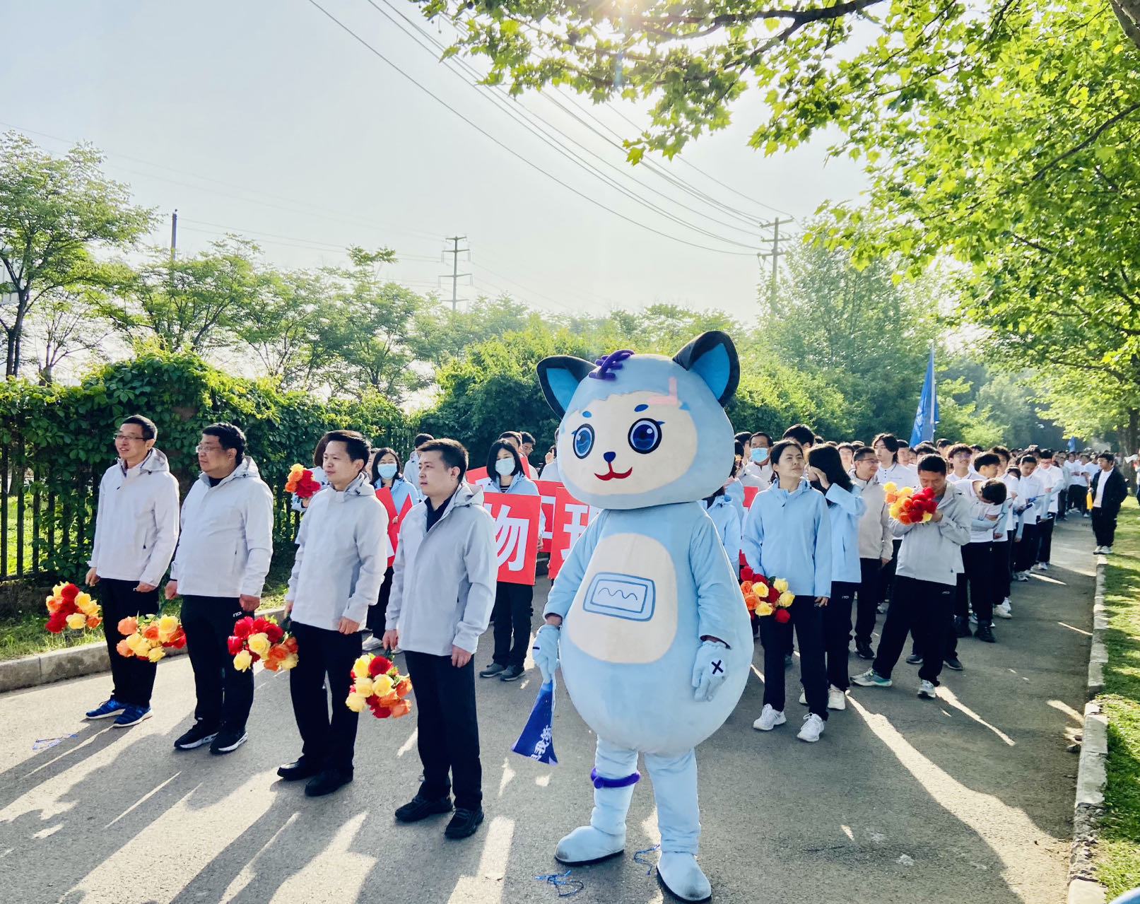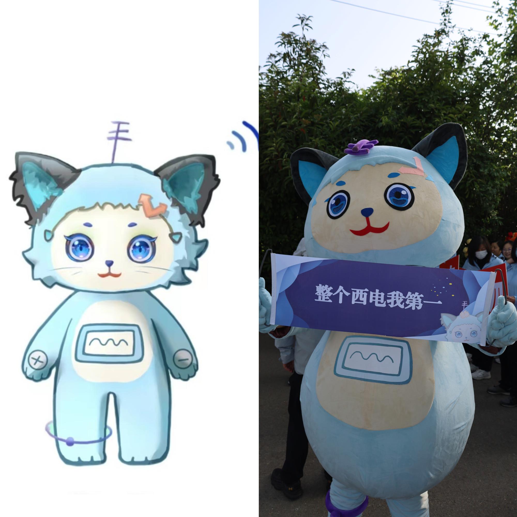 此次运动会上,来利国际旗舰厅吉祥物菲菲首次亮相。菲菲英文名“PhyPhy”,取自于物理英文Physics的首音,由来利国际旗舰厅员工设计,以物理学界著名理论、物理学史“四大神兽”之一——“薛定谔的猫”为设计灵感。猫咪的“神秘,灵巧”的特质,是物理学科带给人们的第一印象;以猫咪为原型拟人设计,再添加诸多物理学科的元素,例如:猫咪的耳朵有电波传播与探测功能;头顶有天线装置,可接收发射无线电;手背上有正负电极;肚子上装有示波器;脚环是极简化的行星轨道。设计者希望这只小猫能向大家展现西电来利国际旗舰厅学子奋发学习,认真生活的积极向上的形象。