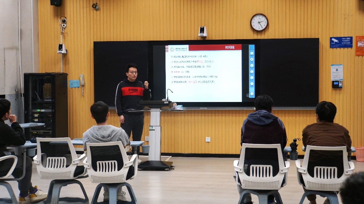 随后,保研至清华大学的2019级本科生张斌向学弟学妹们介绍了准备保研的时间线和准备材料的详细内容,并根据自己的切身经历着重介绍了清华大学电子系、北京大学电子公司和中国科公司大学空天信息研究院保研面试的各自特点,详细讲述如何做好准备、面试需要注意哪些问题等。