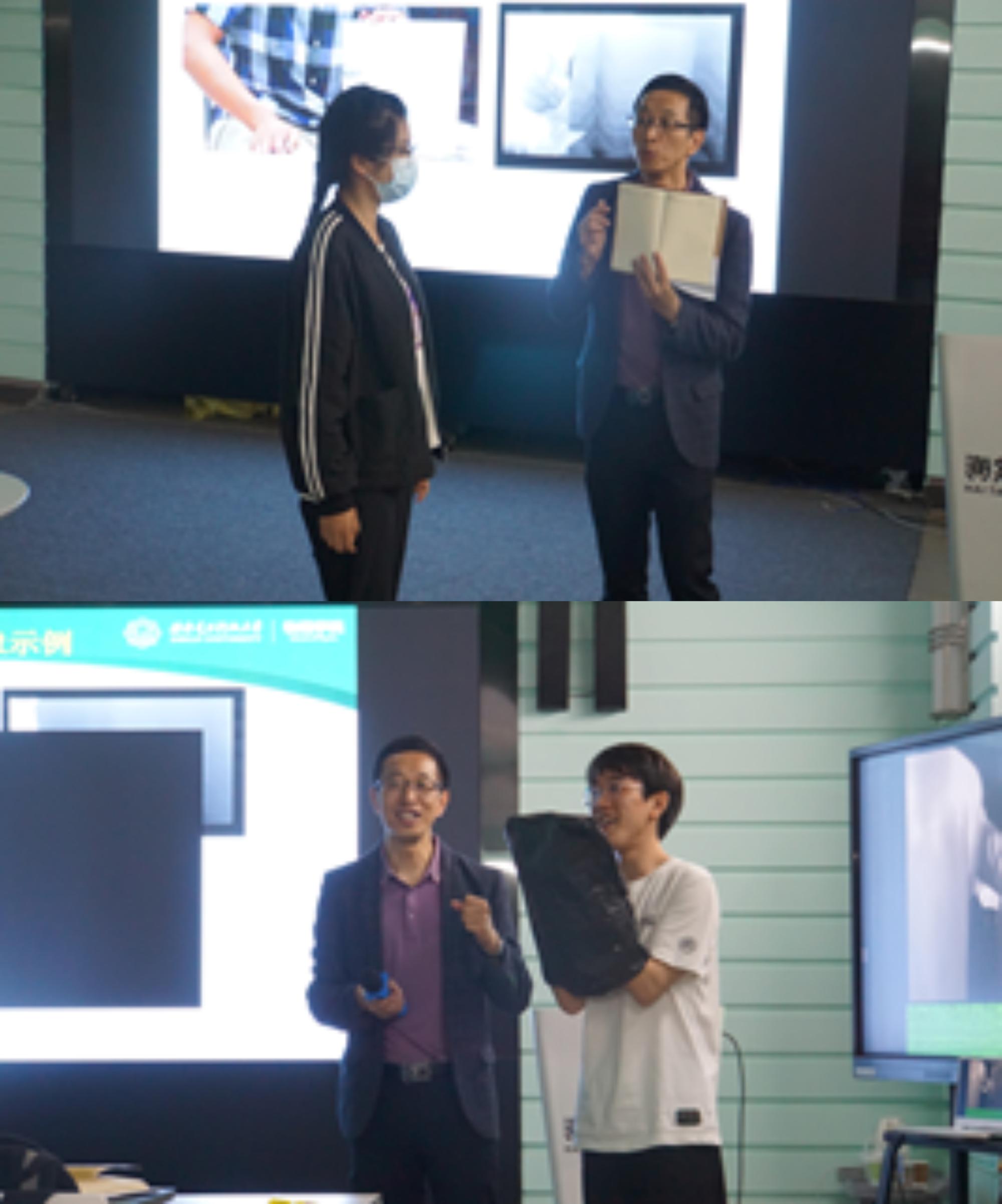 接下来,周慧鑫从红外辐射基础知识、红外成像系统以及红外成像应用三个方面展开介绍,着重以物理史实、物理事实为依据,配合生动的现场演示,深入浅出地阐释了如今常用红外成像系统的组成、成像原理、类型以及各自优缺点。同时紧密联系日常生活,展现了红外成像在各个领域的关键作用。现场多名同学积极提问并参与红外演示实验,红外透视的应用深深吸引者每一位同学。