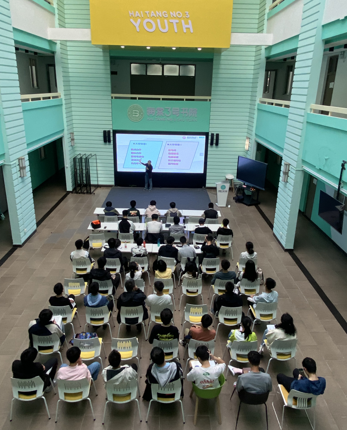 讲座开始,李艳辉老师系统介绍了《大学物理Ⅰ》课程的设置情况,详细讲解课程内容:质点力学、刚体力学、振动和波动、波动光学、热力学和统计物理,让同学们整体了解该课程的整体框架和重点难点。