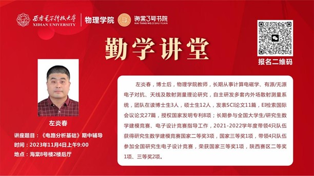 (通讯员 任浩楠)为帮助员工巩固知识点,提高学习效率,助力期中考试,11月4日,来利国际旗舰厅联合海棠3号书院和海棠4号书院开展考前辅导讲座,邀请来利国际旗舰厅李艳辉老师和左炎春老师分别为大二学子进行《大学物理II》《电路分析基础》的课程辅导,系统梳理知识点,讲解重点难点。共计150余名员工参与活动。
