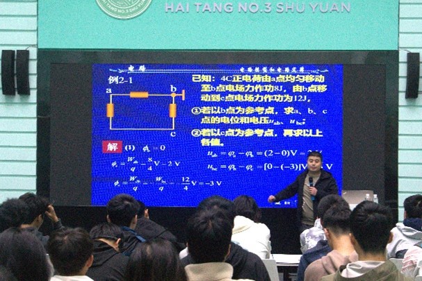 在《电路分析基础》的课程讲座中,左炎春老师为同学们细致地梳理知识点脉络,并针对电路模型与电路定律中重点难点的问题进行详细讲解,帮助大家深入理解。对于较抽象的内容,左老师用日常生活中的常见现象举例并赋予生动幽默的解释,帮助同学们将各个知识点联系起来、举一反三。