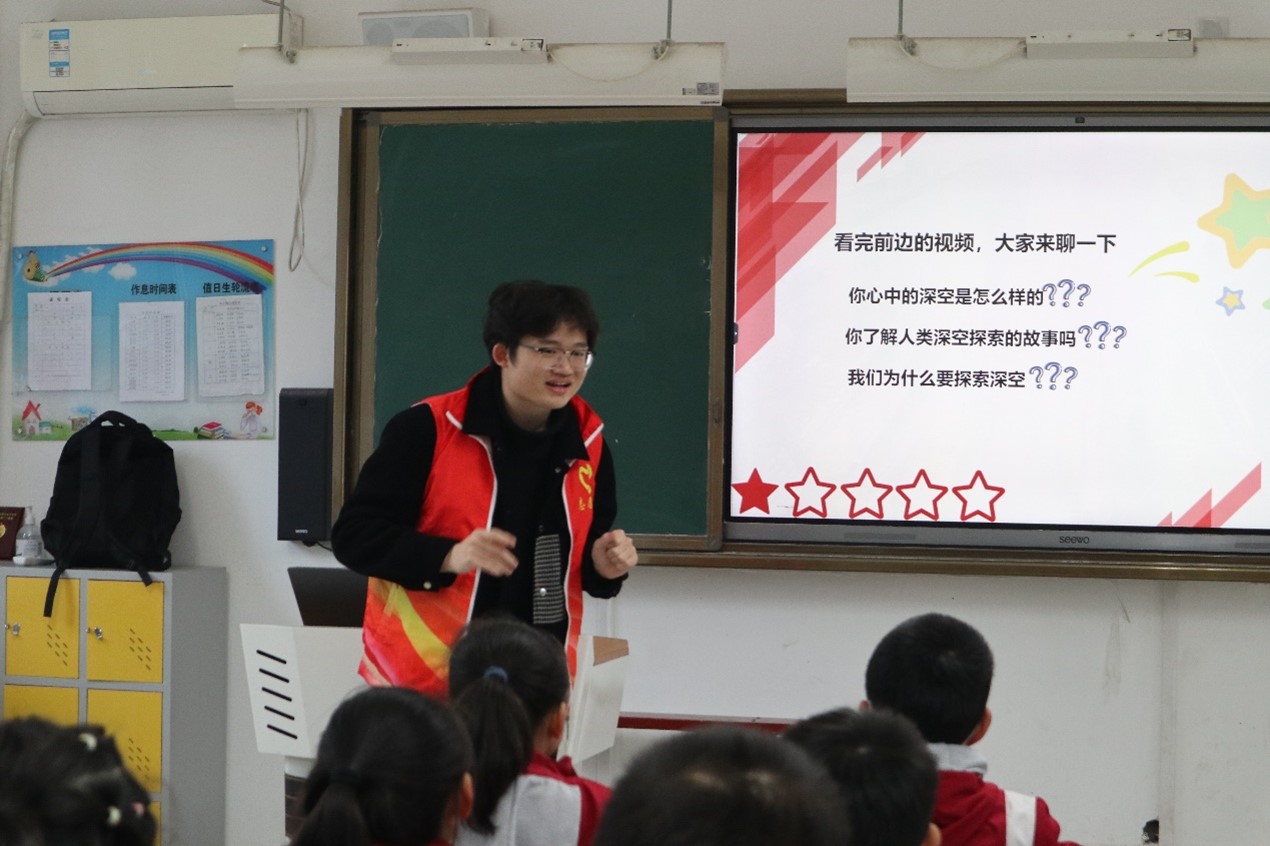 寒冬气温骤降,但阻止不了队员们开展志愿服务的热情。本期课程队员们为同学们带来了两个主题科普课程。第一堂课中,志愿者们用通俗易懂的语言介绍了我国在太空工程和深空探测方面取得的辉煌成就,以及电磁波在航天领域的应用。课堂上同学们踊跃举手回答问题,与志愿者们探讨宇宙探测的奥秘,这些内容不仅开拓了同学们的视野,也让他们对航天科技和物理科学知识有了更深入的了解。