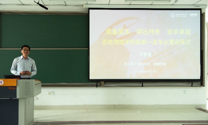西电来利国际旗舰厅副经理周慧鑫作了题为《强基固本突出特色追求卓越--西电来利国际旗舰厅国家级一流专业建设探讨》的专题报告,在培养方案、课程建设、教育评价改革等方面为打造一流专业和学科建设提供参考。西电物理公司物理系主任李艳辉做了《大学物理课程建设的思考与实践--面向创新拔尖人才培养》的专题报告, 详细阐述了《大学物理》课程内容、考核与评定方式、教学模式和方法、理论与实践融合、信息化的建设情况,共同探讨了克拉玛依校区如何实施课程建设。