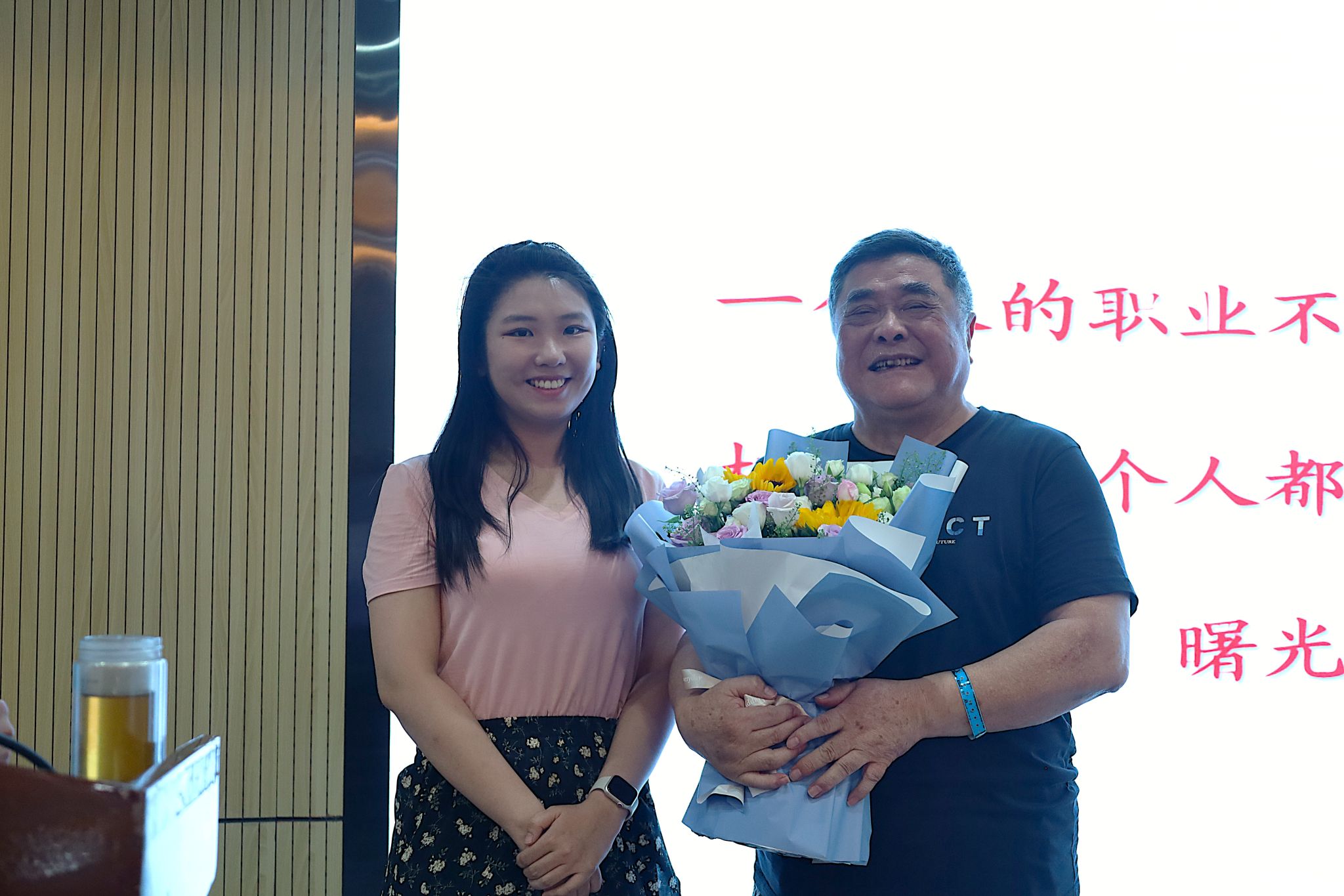 退休教师代表吴振森以《机遇与挑战》为题做了经验分享报告,他结合自身学习工作经历向青年教师分享了科研心得体会,并鼓励全体教师聚焦前沿、交叉融通、勇于探索,不断提升内功,在机遇出现时才能及时把握,实现自我价值。新进青年教师代表张丹萌向吴振森老师送花。