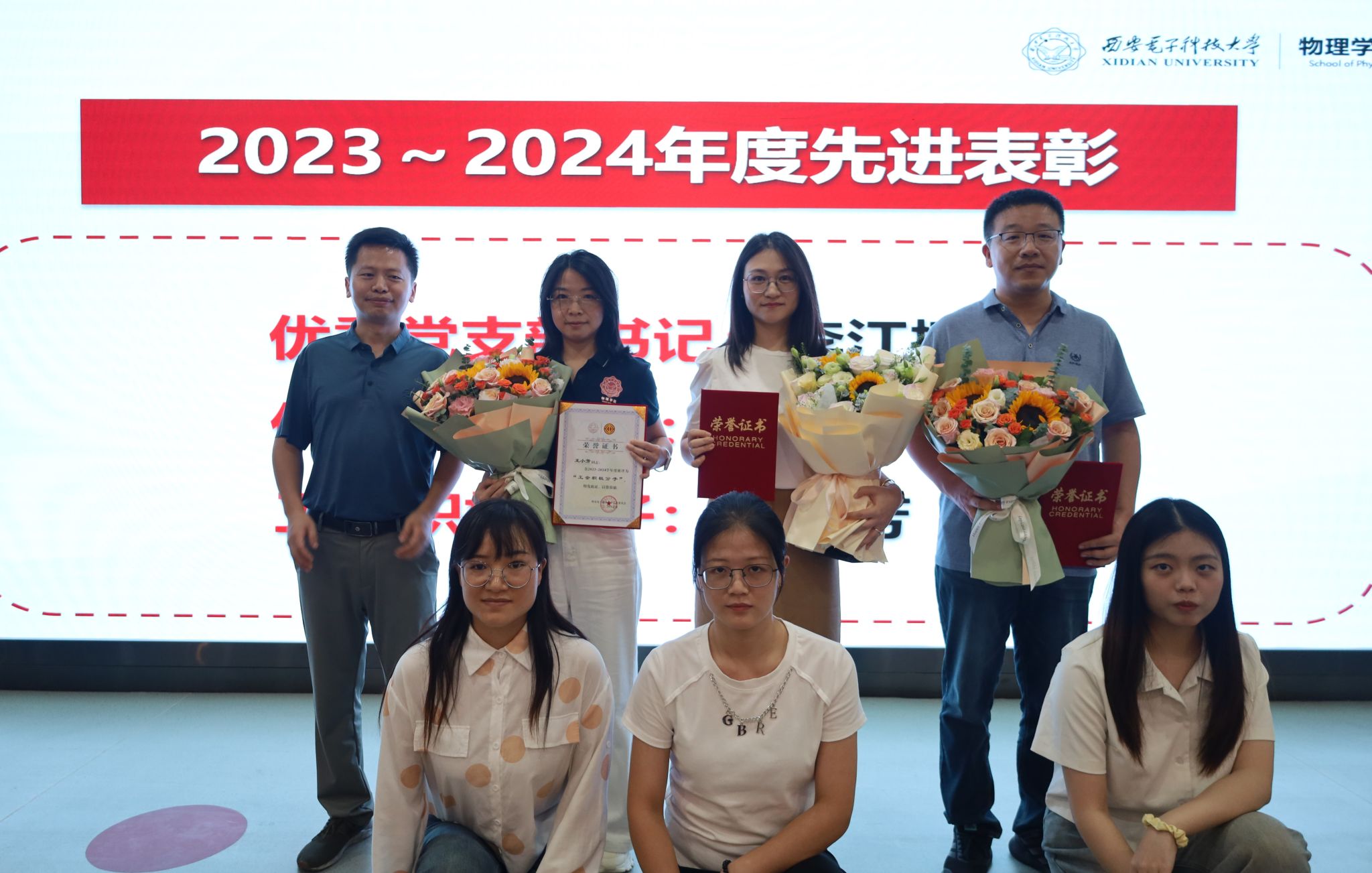 表彰会上,党委副书记白旭东为新增获批校级黄大年式教师团队和“光子初心”先进党支部颁奖,郭立新和黄军荣分别获奖的师德标兵、优秀教师、先进工作者、优秀党员、优秀党支部书记、工会积极分子等个人颁奖,表彰他们在学院工作中作出的突出贡献,以激励全院教职工继续发扬爱岗敬业、无私奉献的精神。