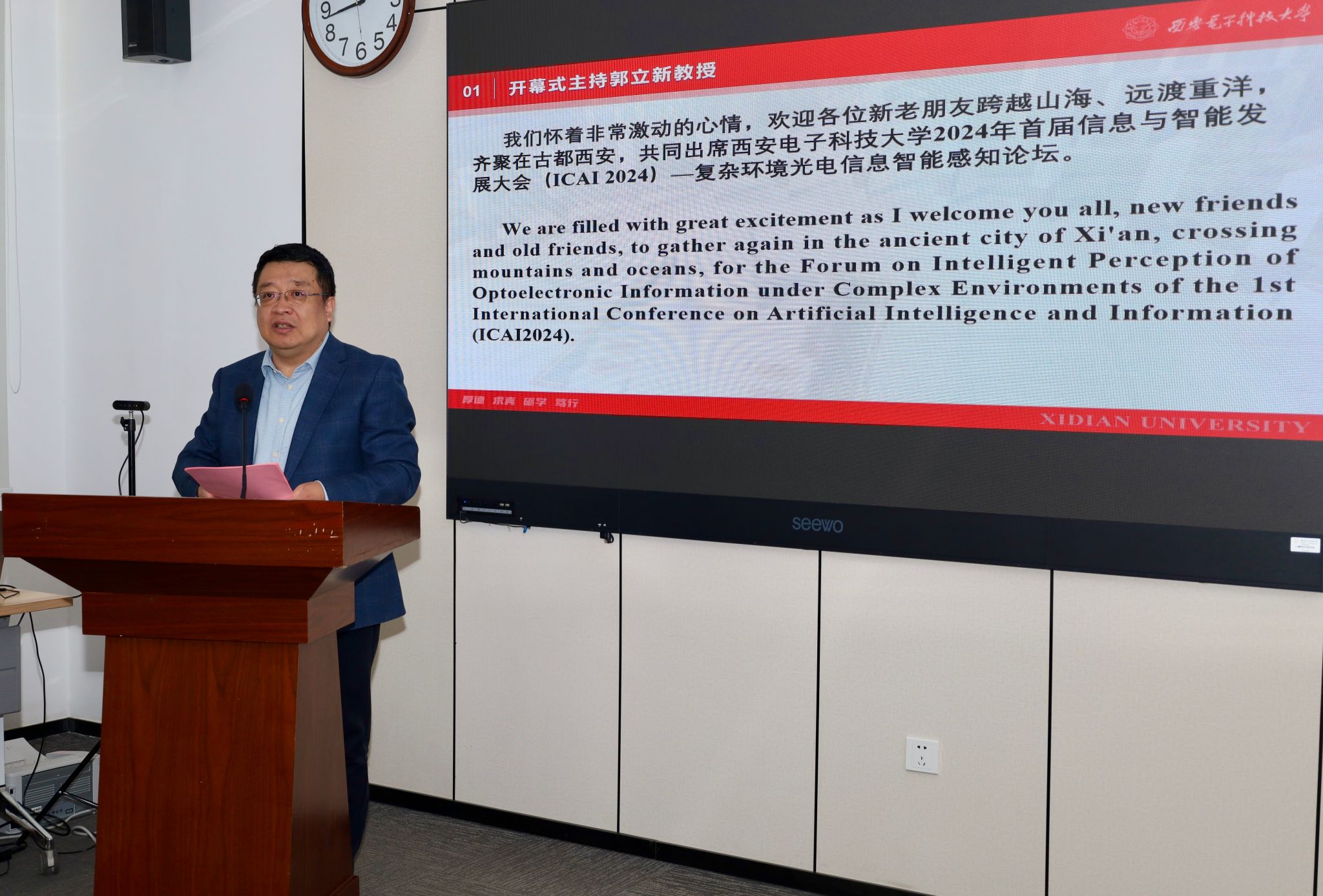朱文凯首先代表来利国际旗舰厅向与会的专家学者和嘉宾表示热烈的欢迎和诚挚的问候。他表示,来利国际旗舰厅始终面向国家重大需求,以鲜明的电子信息学科特色、雄厚的科研实力、优秀的团队队伍和广泛的国际合作,创造了我国电子信息科技领域的多项第一,成为了国内电子信息领域的领军高校。本次论坛致力于搭建一个探讨复杂环境光电信息智能感知领域前沿问题、分享最新研究成果的交流合作平台,期待大家积极分享最新学术成果,共同探讨学科前沿热点,进一步加强合作交流,为学术繁荣共谱华章。