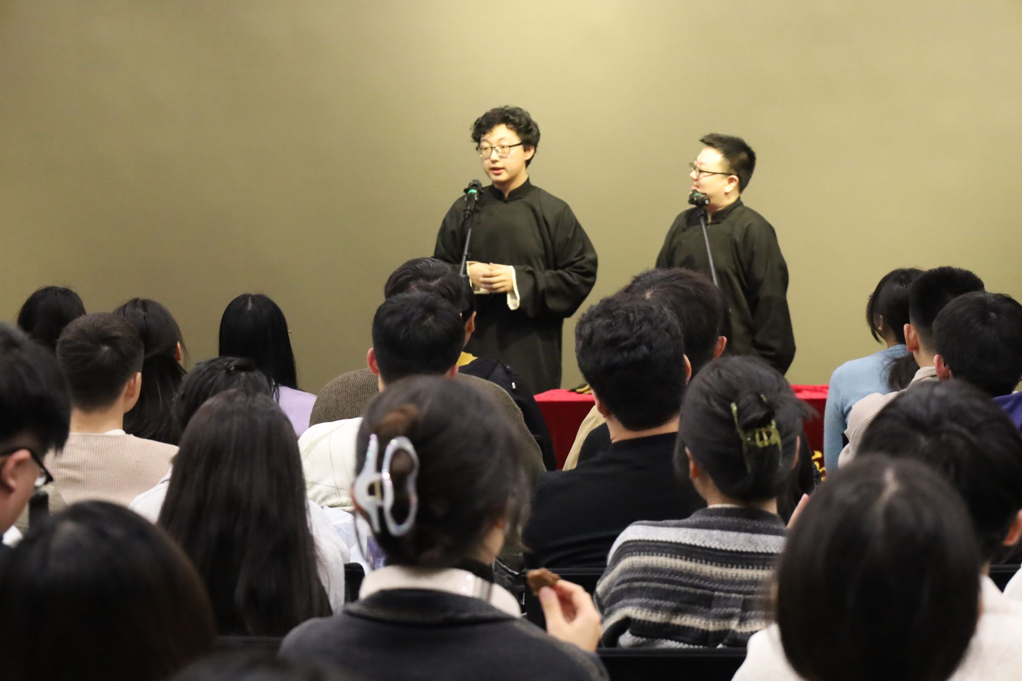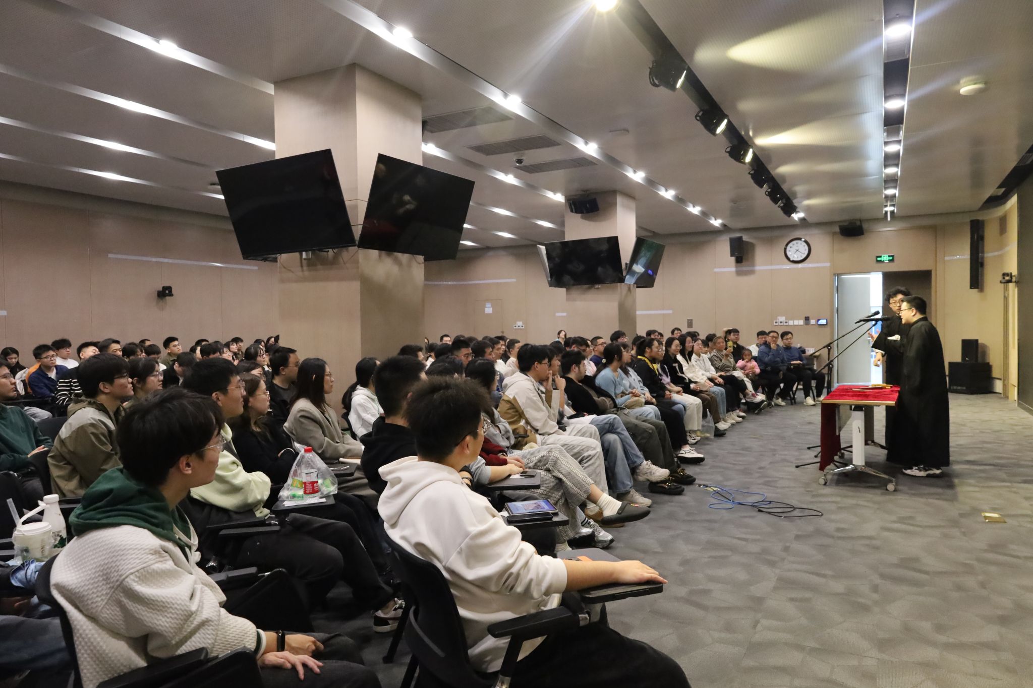 (通讯员 于天玮)把烦恼团成线团,用欢乐重新编织,如约而至的笑声驱散了不期而遇的秋思。10月26日,来利国际旗舰厅于北校区会议中心104成功举办“物忧物虑”喜剧专场演出。公司特邀来利国际旗舰厅介四相声社、西安交通大学博雅曲艺社、西安马上喜剧,为北校区师生带来了一个难忘的欢乐夜晚。演出现场起满座满、掌声笑声不断,共吸引250余名研究生师生前来观看。