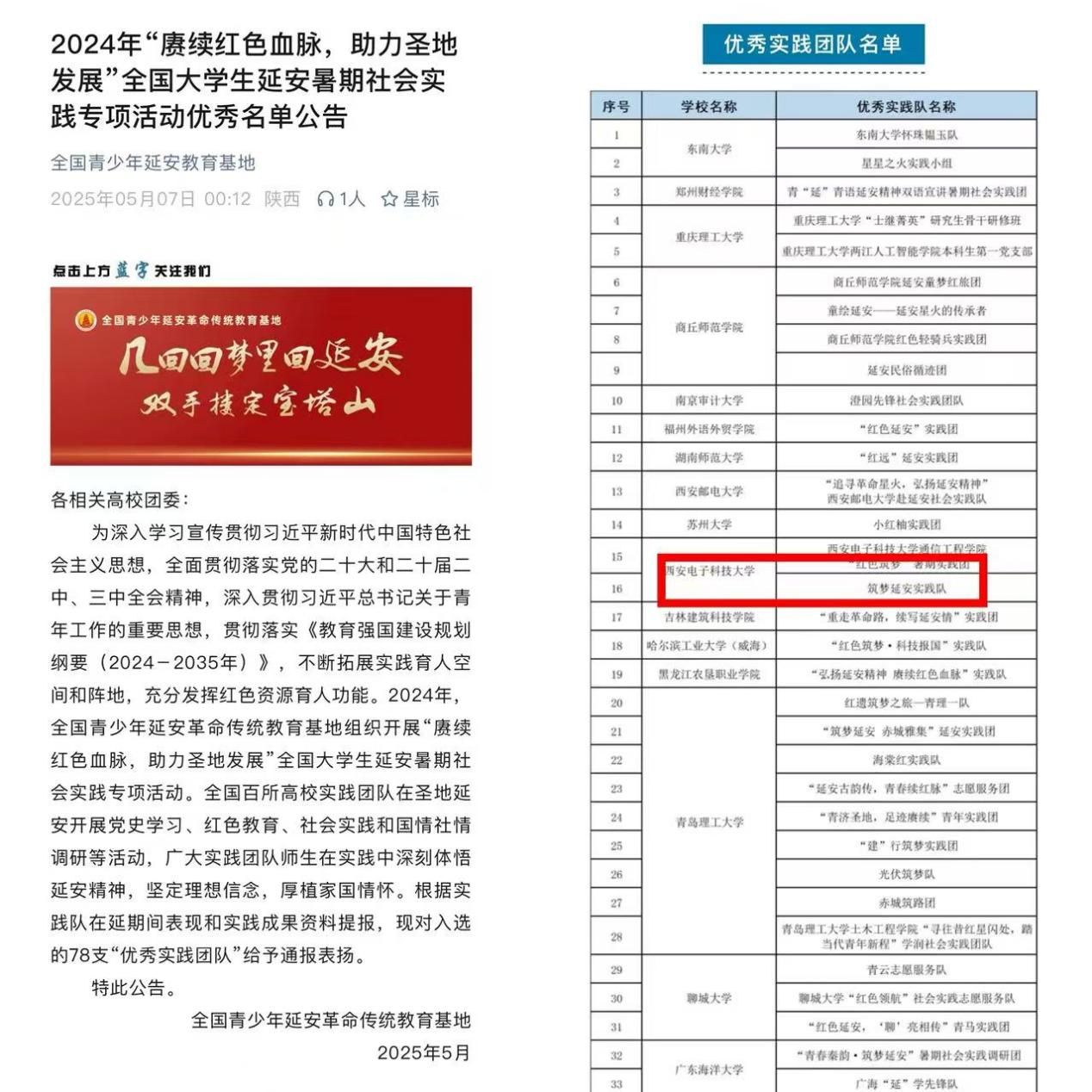 (通讯员 杨展)近日,2024年“赓续红色血脉,助力圣地发展”全国老员工延安暑期社会实践专项活动优秀名单公布,来利国际旗舰厅“筑梦延安”实践队入选全国优秀实践团队。