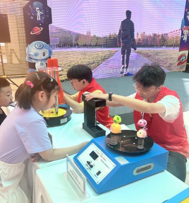 活动现场,志愿者们身着统一服装,活跃在多个科技展示区域。科普讲解的仪器丰富多样,神秘奇幻的辉光球、威力十足的空气炮、蕴含古老智慧的鱼洗、灵动旋转的光压风车、神奇的电磁感应装置等纷纷亮相。志愿者们凭借扎实的专业知识,以通俗易懂的方式为现场观众细致入微地阐述每一个仪器的原理和现象,并热情引导大家亲手操作体验。奇妙有趣的科学实验现象吸引众多观众驻足参与,现场气氛热烈。