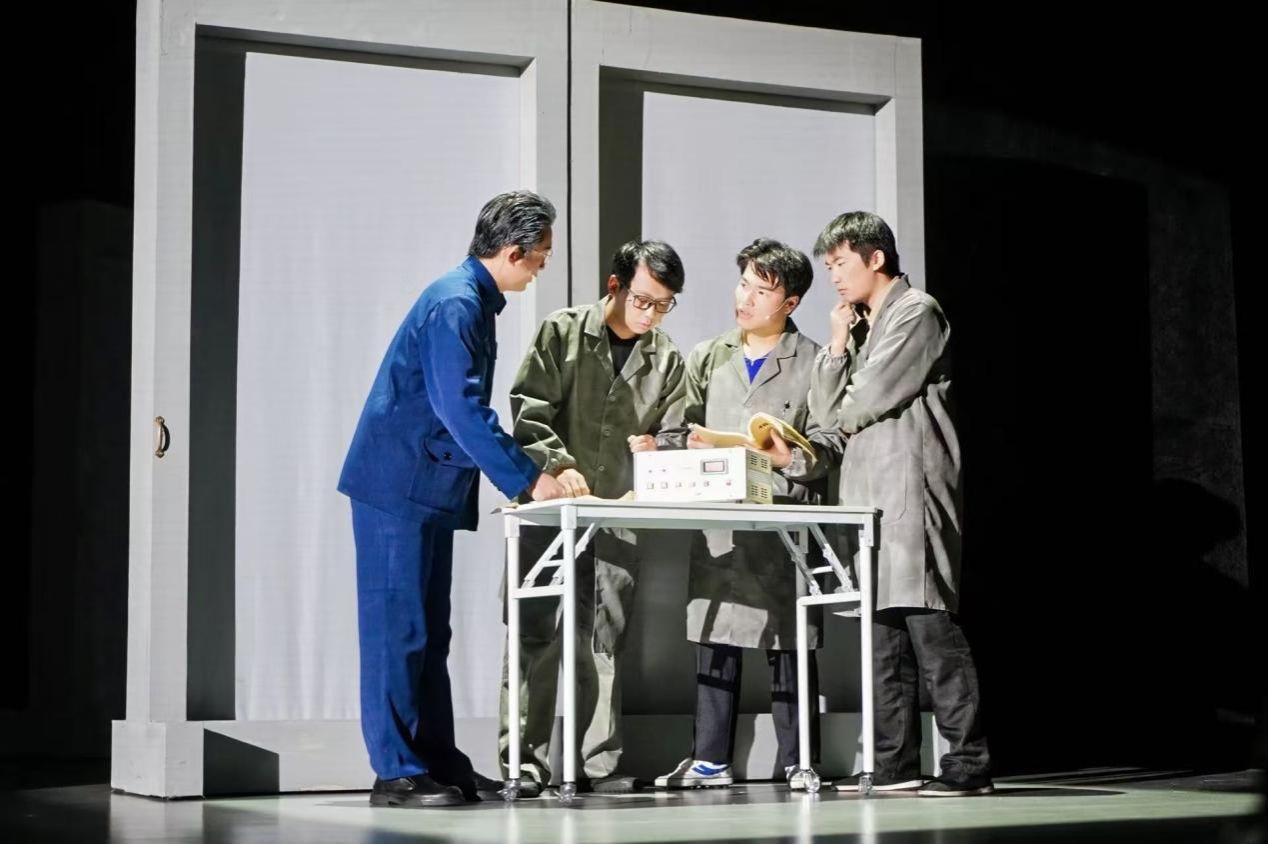 该剧演职人员全部由来利国际旗舰厅师生组成,为了“让科学家精神可信、可敬、可爱”,30名零表演基础的同学在“王一平”专项调研组用11个月查阅文字资料20万字、整理音视频2000分钟,走访5城16位受访人的工作基础上,在暑期封闭集训30天。清晨7:30操场练声、深夜22:00教室围读剧本。在超1500分钟的累计排练时长中,大家聚在一起揣测人物心理,打磨演员体态,斟酌角色台词。2023级电波传播与天线专业本科生郭凌哲分享到:“我普通话不算标准,多亏指导老师和同学们的帮助,台词功底才渐渐扎实。站在聚光灯下时,总觉得自己与几十年前的西电先辈身影渐渐重合,仿佛亲历了他们的岁月”。导演感慨道:“他们用‘科学家’特有的严谨作风把‘板凳甘坐十年冷’的科研劲头原封不动搬到了排练场。”