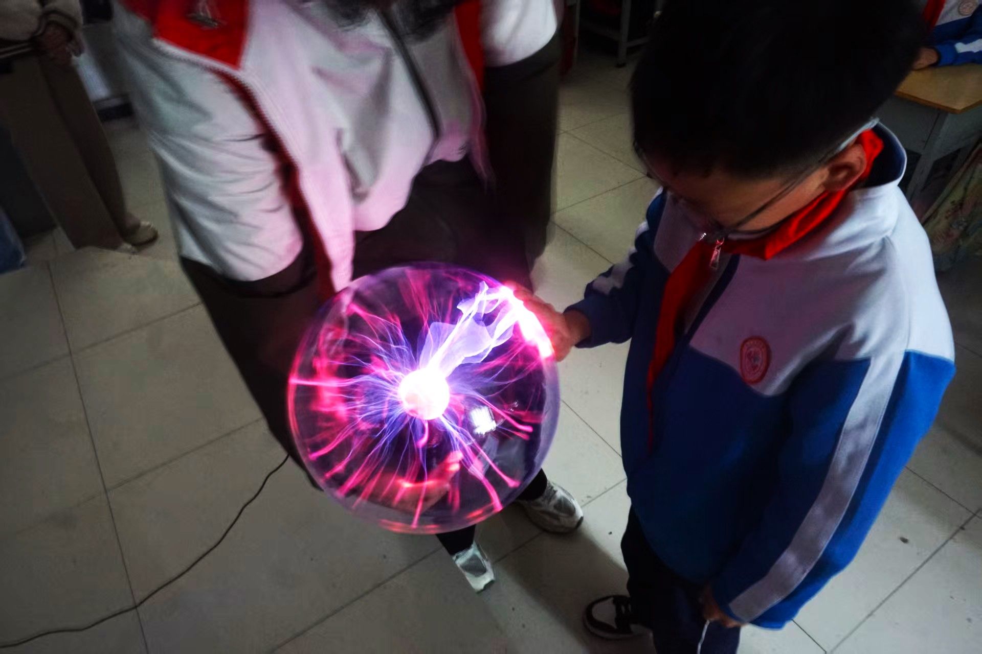 全场的焦点,无疑是那颗充满魔力的辉光球。球体内,无数道紫色电弧如精灵般舞动。当孩子们的小手覆上球面,电弧便仿佛听到了召唤,瞬间汇聚成一道光束,顺着指尖跳跃、游走,仿佛让孩子拥有了掌控“闪电”的超能力。“我们的身体,就是电流的‘引导员’!”志愿者的讲解让静电的奥秘变得生动有趣。现场欢声雷动,科学的种子,已在无数颗心中悄然萌芽。