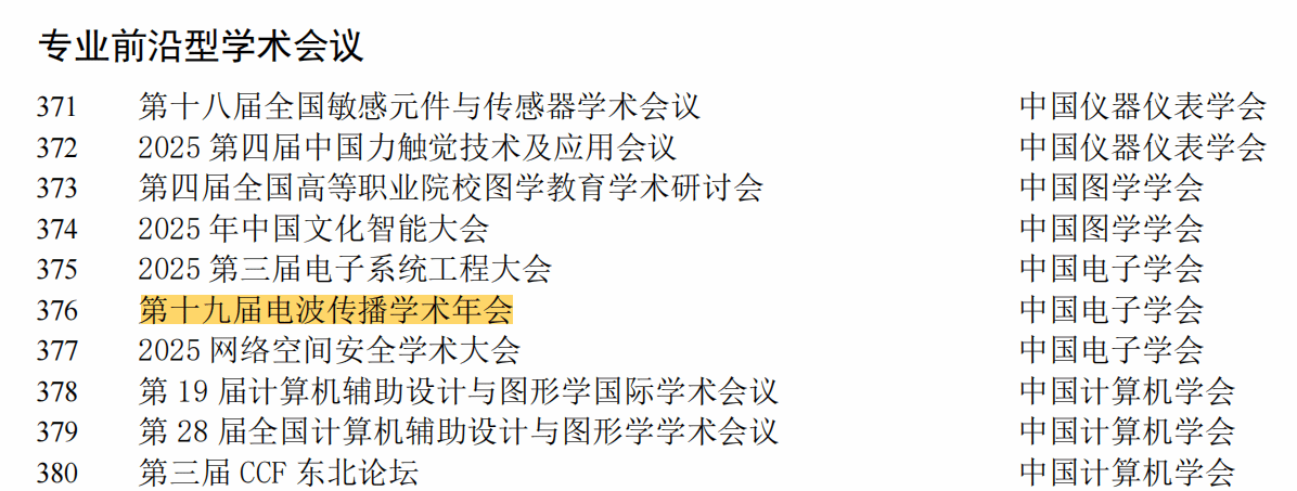 公司主办的第十九届电波传播学术年会入选中国科协《重要学术会议目录(2025)》