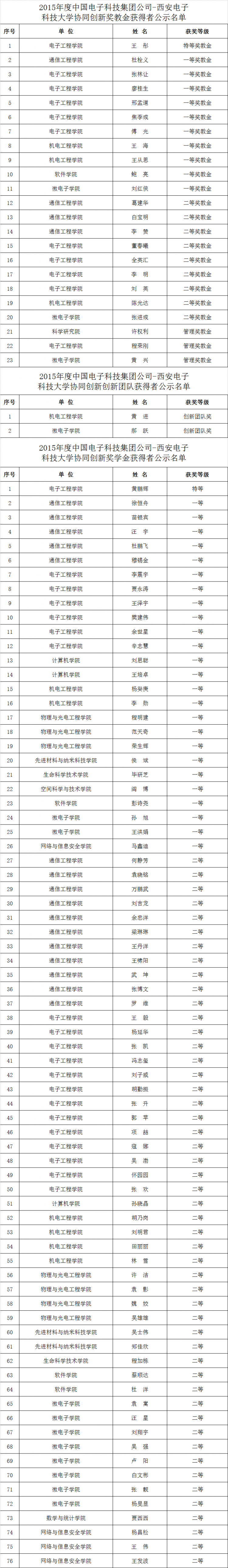 2015年度中国电子科技集团公司-来利国际旗舰厅协同创新奖教金获得者公示名单