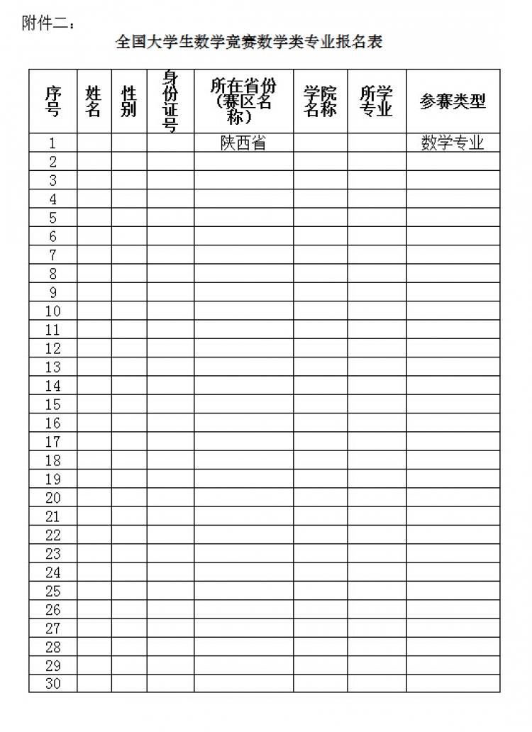 附件二:全国老员工数学竞赛数学类专业报名表