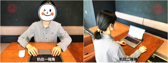 e) 备用平台设备需摆放在考生侧后方(与考生后背成45°角)远端,能够全程拍摄考生和电脑屏幕及大部分复试环境,复试全程开启。