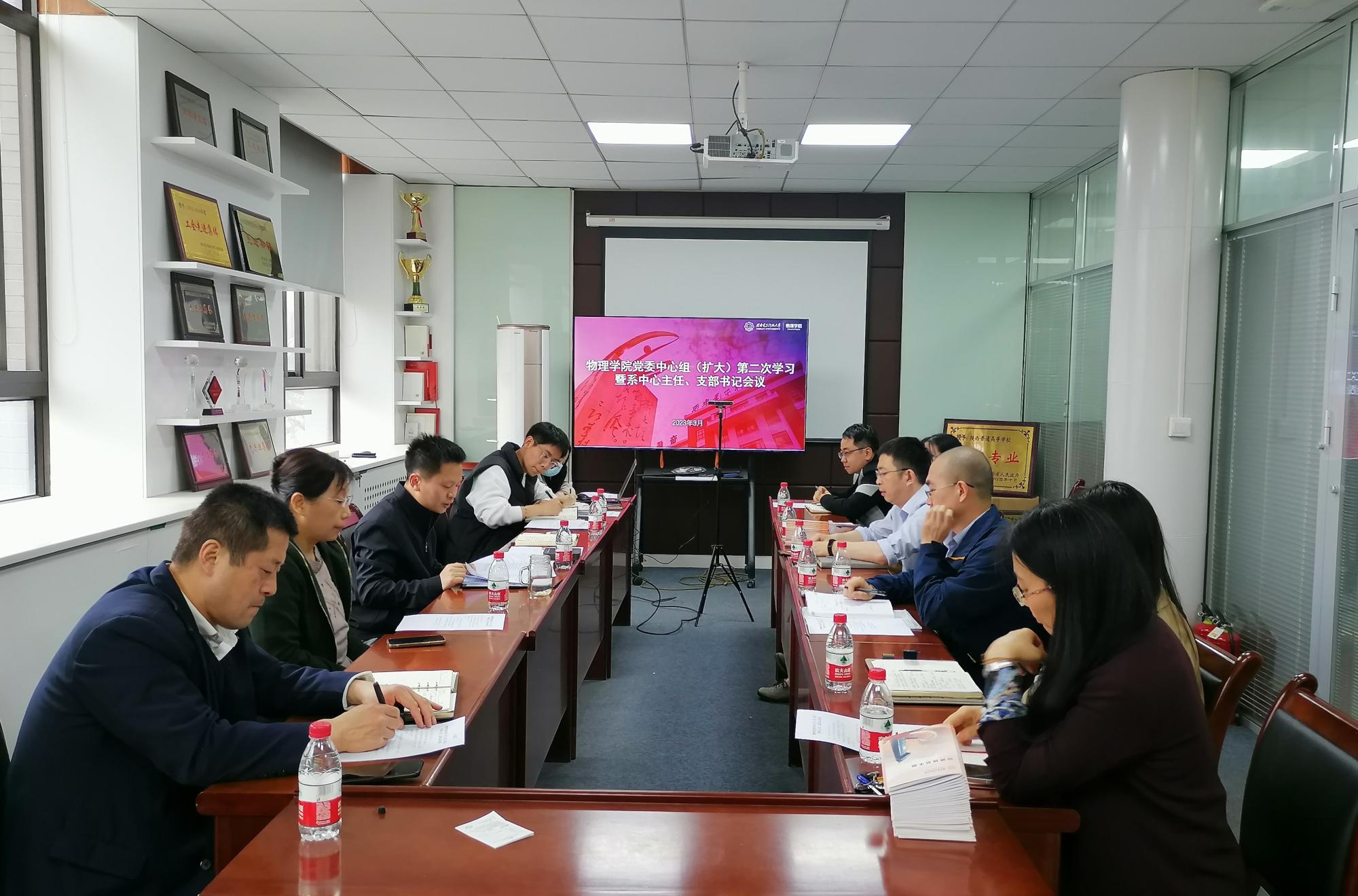 (通讯员:胡向涛)3月30日下午,物理公司党委以线上线下相结合方式召开中心组(扩大)第二次集体学习暨系中心主任、支部书记会议。公司领导班子成员,各系、中心主任及教职工党支部书记、公司机关管理人员线下参加会议,其余老师线上参会。会议由党委书记黄军荣主持。本次学习以“全面从严治党”为主题,黄军荣传达公司关于全面从严治党的会议精神、公司2023年全面从严治党工作方案及公司2023年度工作要点,强调公司对于公司从...
