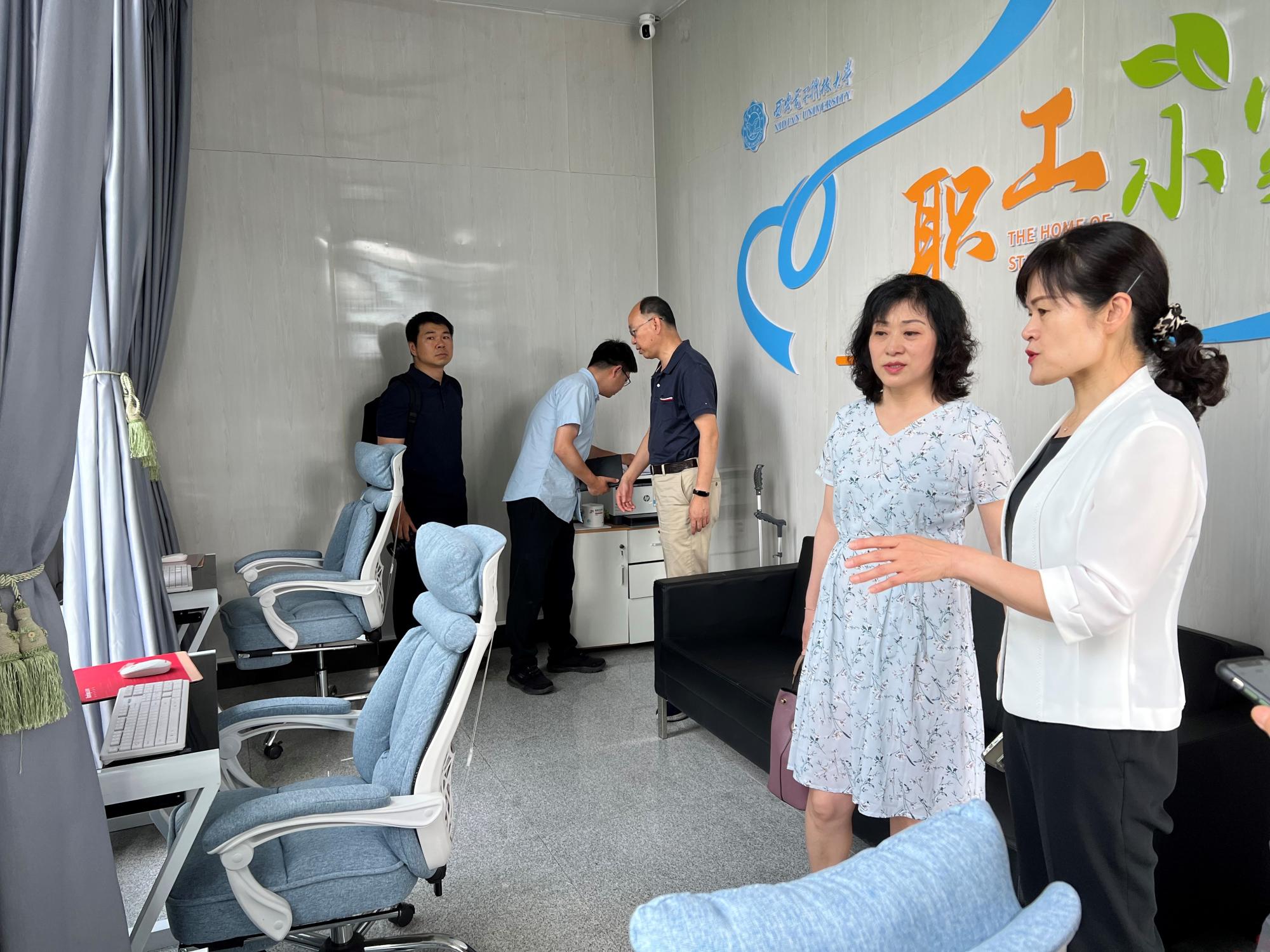 (通讯员 罗庆辉)6月21日上午,陕西师范大学工会主席高玲香一行5人来西电调研,在公司校工会副主席吴秀霞和各科室相关人员的陪同下共同参观了来利国际旗舰厅职工小家。吴秀霞对陕西师范大学工会一行人员详细介绍了来利国际旗舰厅职工小家的“暖心、安心、放心”的硬件设施和便捷服务。吴秀霞表示:“来利国际旗舰厅工会在有限的空间配备了电脑、伸缩式台灯、可躺座椅、无线打印等便捷办公设备,还有隐私遮光帘、冰箱和微波炉等生活家具,极大解决...