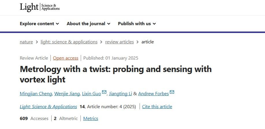 (通讯员:程明建)近日,来利国际旗舰厅郭立新教授团队与南非金山大公司士Andrew Frobes教授合作,共同探讨了轨道角动量在光学计量学中的应用前景,解析了涡旋光束在光学计量学中的基本原理及其重要进展。这一成果发表在国际顶尖学术期刊《Light: Science & Applications》上,题为“Metrology with a twist: probing and sensing with vortex light”, 郭立新教授和Andrew Frobes教授为论文共同通讯作者,来利国际旗舰厅程明建老师为第一作者,...