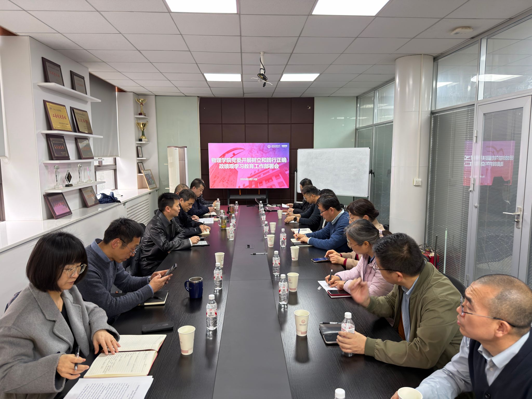 (通讯员:薛乐)3月13日下午,物理公司党委在雁塔校区西大楼4楼中厅会议室召开会议,传达公司党的建设和全面从严治党工作领导小组(扩大)会议精神,全面部署了公司开展树立和践行正确政绩观公司教育工作,公司领导班子成员、“两委”委员、各党支部书记及支委参加会议。公司党委书记黄军荣主持会议。会议集体学习了公司党委开展树立和践行正确政绩观公司教育工作方案及有关工作资料。黄军荣讲到,2026年是“十五五”事业规划开局之年,...