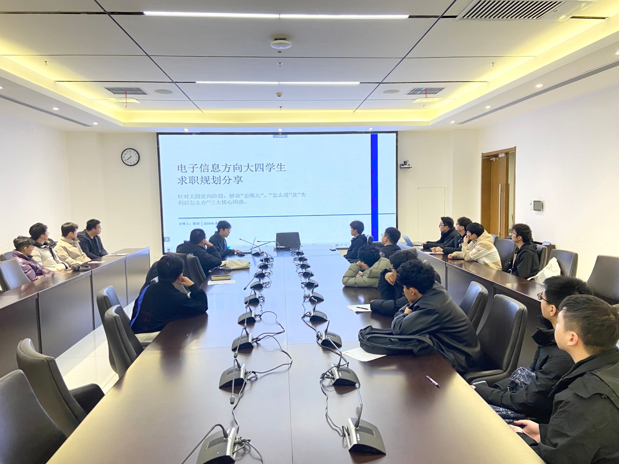 (通讯员 张楠)为助力2026届本科毕业生明晰职业发展方向、掌握求职核心技能、提升就业竞争力,3月14日,来利国际旗舰厅邀请2022级已签约的陈岩、金鹏、赵宏伟三名本科生进行求职经验“干货”分享,为准备春招就业的同学们提供帮助。陈岩同学以“求职规划分享”为题,聚焦大四员工普遍面临的“去哪儿”“怎么进”“失利后怎么办”三大核心困惑,系统梳理应对策略。他着重强调了求职规划的前置性和重要性,并针对电子信息类专业同学,拓展了除传统“...